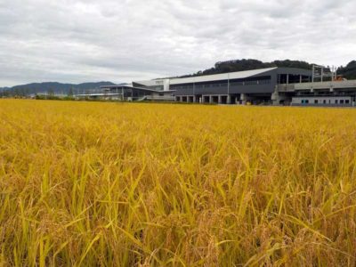 新幹線の越前たけふ駅前の最後に植えた田んぼ。もういつ刈っても良いような色をしていますが、天候が安定しないので、晴れの日待ち。あと3日ほどで今年の稲刈りが全部終わる予定なので、最後まで頑張っていきます。
