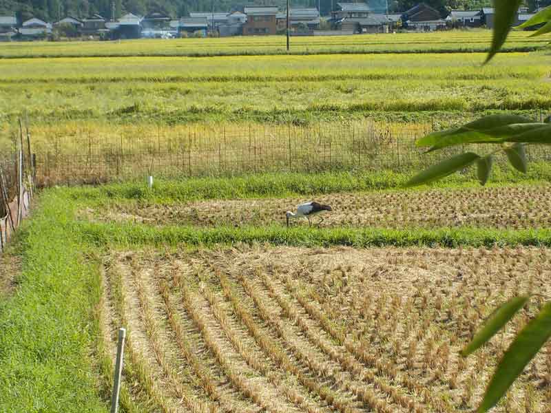 近くに飼育場があるので、コウノトリが稲刈り後の田んぼでエサを探しているのをよく見かけました。最初に飛来した頃は珍しかったのですが、こう頻繁に田んぼで見かけるようになると地域に馴染んて来たかな、という感じもします。