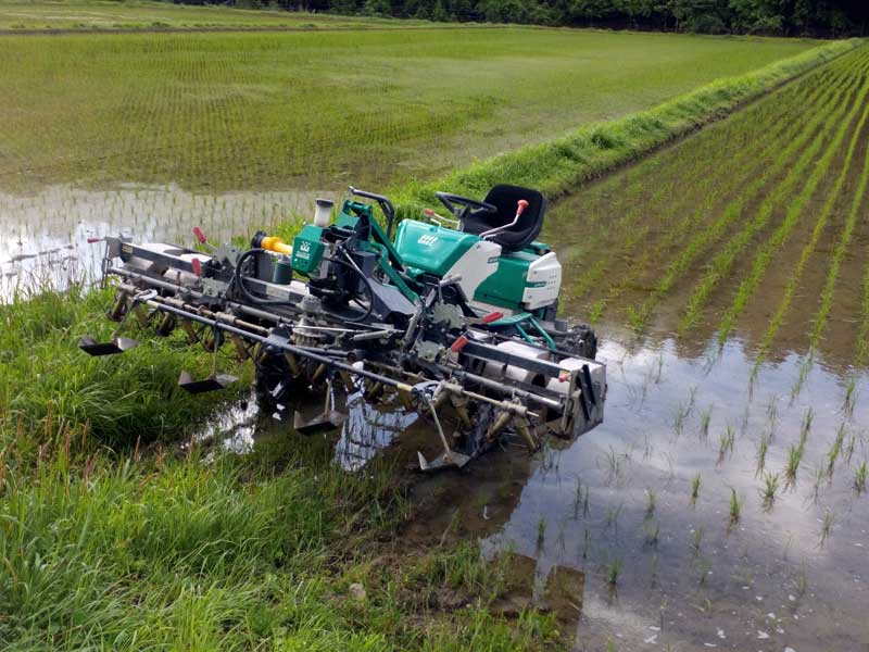 忙しい理由の1つが、無農薬栽培の田んぼが20haを超えたこと。水田内の除草作業という普通の農家さんはやらない余分な仕事があり、この作業にかなりの時間を費やしています。ちなみに当農園でも昨年からこのオーレックの除草機を使っています。無農薬栽培の話はまた別の機会に。