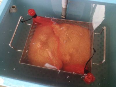 まずはいつも通り消毒から。薬品の入っていない普通の”お湯”で消毒しています。今となってはありふれた方法ですが、そういった”誰でも簡単に使える技術”というのを作り出すというのはすごいことだと思います。