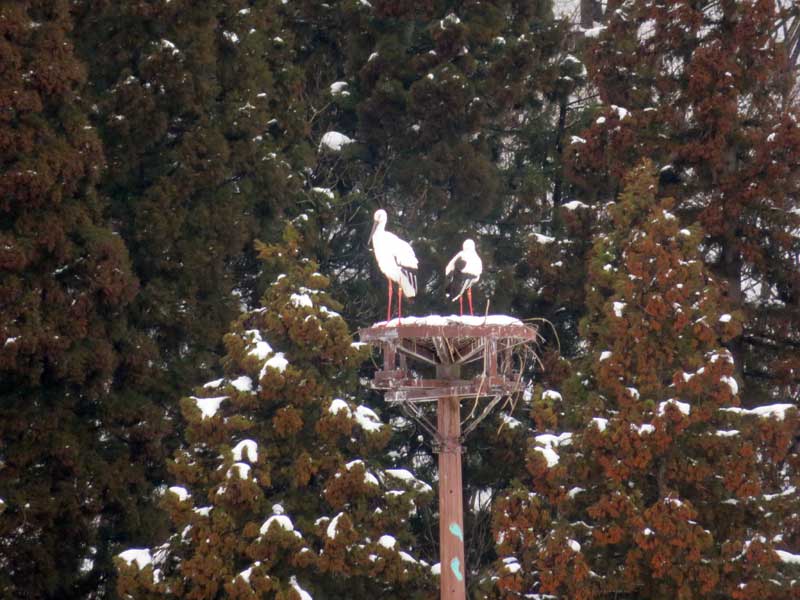 今年のコウノトリ。昨年とは別のペアらしいですが、2月に入ってから毎日のように見かけるようになりました。吹雪でもじっとしているので寒くないの?と思ってしまうのですが、野生の動物の環境適応能力というのはすごいですね。