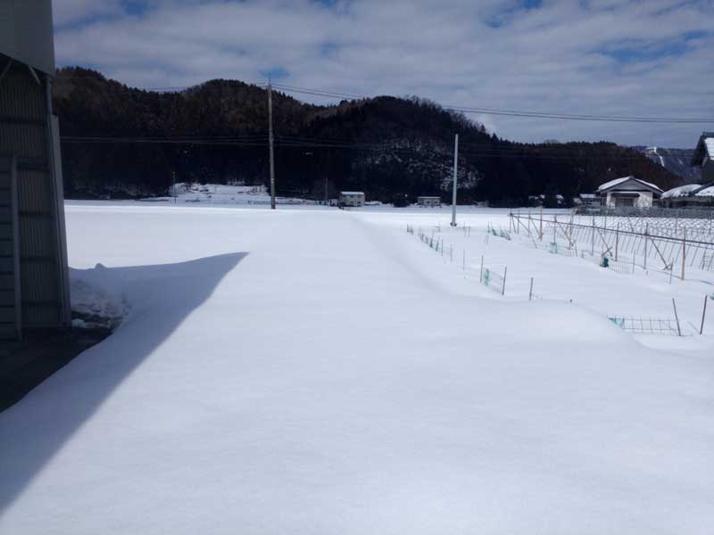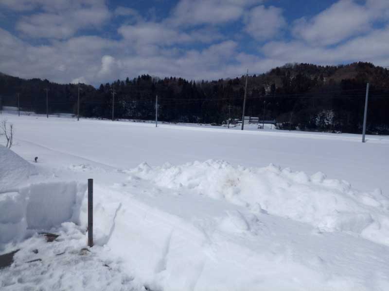 田んぼへの農道は除雪していないので、今のところまったく通れません。3月中旬ぐらいには田んぼの見回りに行けるようになるかな?という感じ。