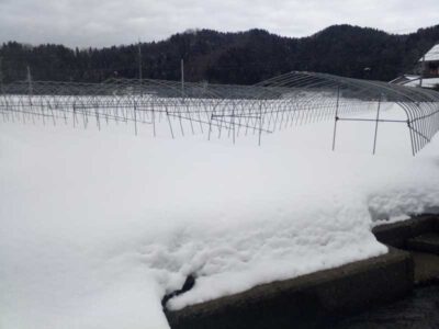 ビニールハウスの現状。4月初旬にはここに苗が並んでいる予定なので早く準備がしたいのですが・・・、今のところ無理ですね。気候や天候次第で作業の予定が決められないのが難しいところですね。