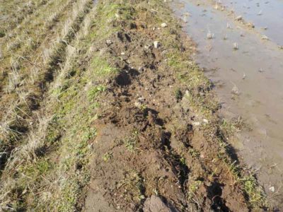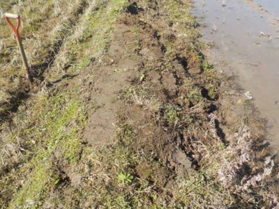 田んぼの畦道もイノシシがミミズを採るために掘って崩してしまう場所がいくつもあるので、それも直します。なぜか無農薬栽培の田んぼの畦ばかり狙われるのはそれだけミミズが多いからでしょうか。通常の慣行栽培の田んぼはほとんど無傷です。