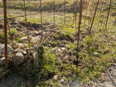 育苗前のこの時期の作業というと、毎年恒例のイノシシ害の後始末。冬の間はイノシシはエサを探して非常に活発になるので、田んぼの周りを覆っているワイヤーメッシュの柵なども簡単に突破してしまいます。細い鉄筋棒で出来ているといっても人間の力では曲げることも難しいのですが、中には鉄筋同士の溶接も剥がしてしまうイノシシもいます。