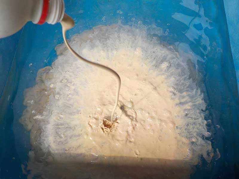 薬剤を水に溶かして、種モミの入った袋を沈めるだけ。温湯消毒なら1回に10分かかるところ、10分で全部終わってしまいました。このまま24時間漬け置きます。