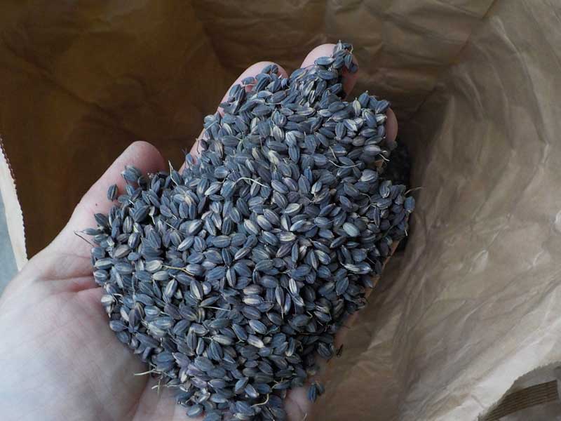 次は無農薬栽培の古代米。これは黒米で、殻をとると真っ黒の玄米が入っています。