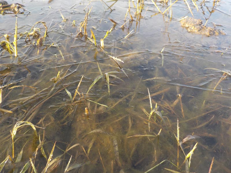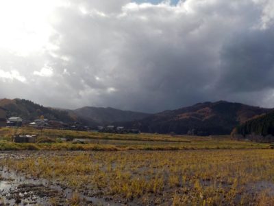 まだ雪は降ってきませんが、朝晩はかなり冷え込むので水を張った田んぼにも氷が張るようになってきました。こんな状態でも水の中の生き物や冬眠中のカエルは死滅しないのですごいです。