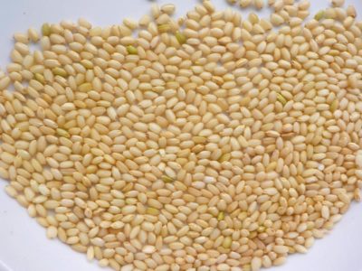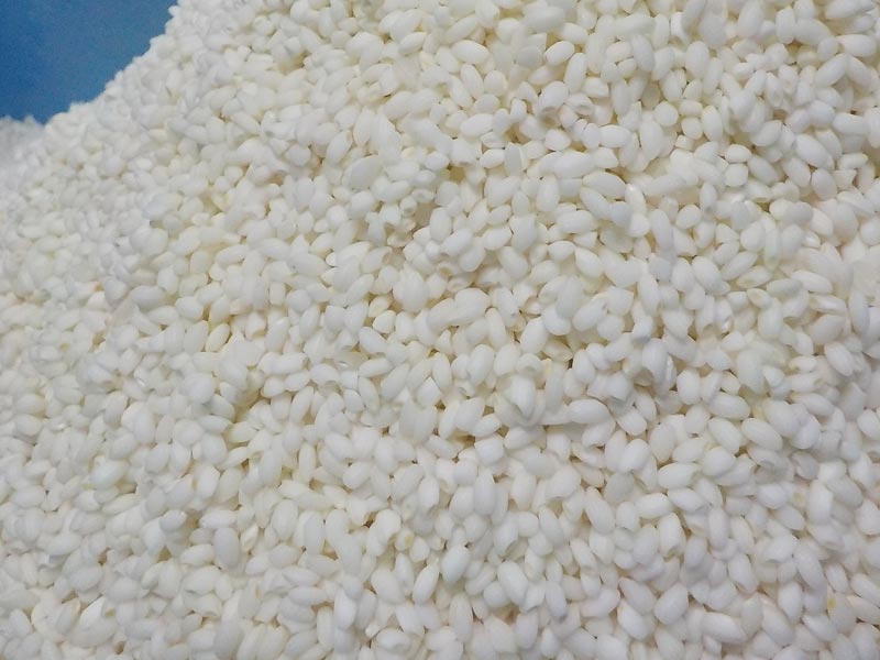 もち米の玄米は普通のうるち米と違ってかなり着色しているのですが、精米するときれいな白色になります。うるち米とは違った色をしているのは、お米の主成分であるデンプンの分子構造が違うためです。もち米はうるち米には無い”延び”と”粘り”があるというのもその特徴の1つで、この性質を利用して餅が作られます。