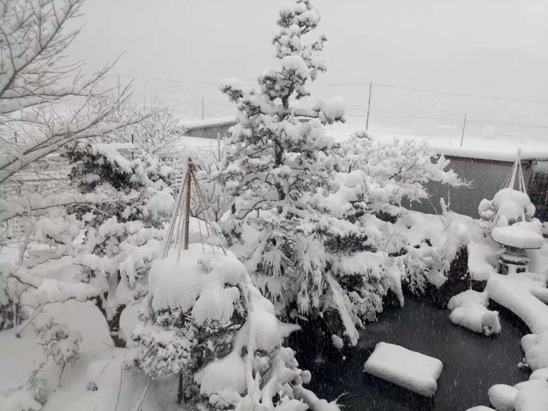 雪は降っただけ積もるので、数時間おきに敷地内の雪を除けるもの雪国の日課。いい運動になります。