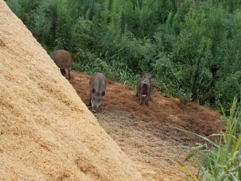 毎日夕方になるとモミ殻の中に残っている僅かなお米を食べに来ます。作業所のすぐ横なので窓から見えるのですが、こうやって見ている限りでは面白いのですが・・・。