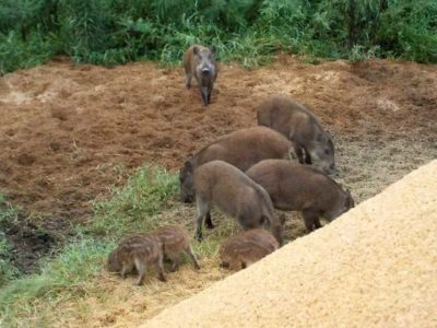この時期になるとイノシシも餌を探すために日中でもよく見かけるようになります。イノシシはお米も大好きなので、田んぼにも入ってきます。