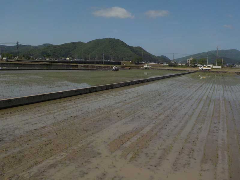 田んぼの場所も1ヶ所に固まっているのではなく、いろんなところにあるので移動もたいへんです。この田んぼは大川沿いの石がゴロゴロしている砂地の田んぼ。田んぼはよく乾くのですが、肥料の持ちが悪いので良さそうにみえて思ったほど収量の無い田んぼです。