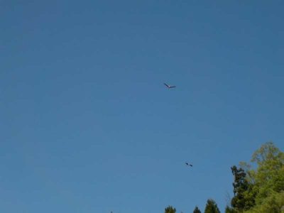 田植え中にふと上空を見ると珍しい鳥が2羽。