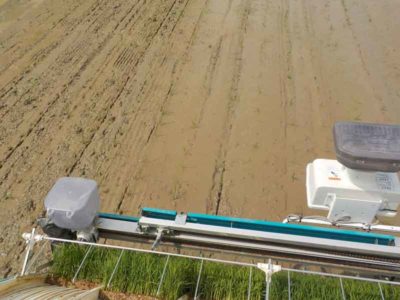 田植え機の上からの写真。今年はちょっとトラブルがありましたが、なんとか予定通り終えることができました。田植え機は1年に1シーズンしか使わないので毎年の使い始めは問題が起きやすく、初日は予定通りにいかないことが多々あります。