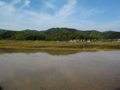 この時期になると、田んぼは水を張ってきれいに均してあります。