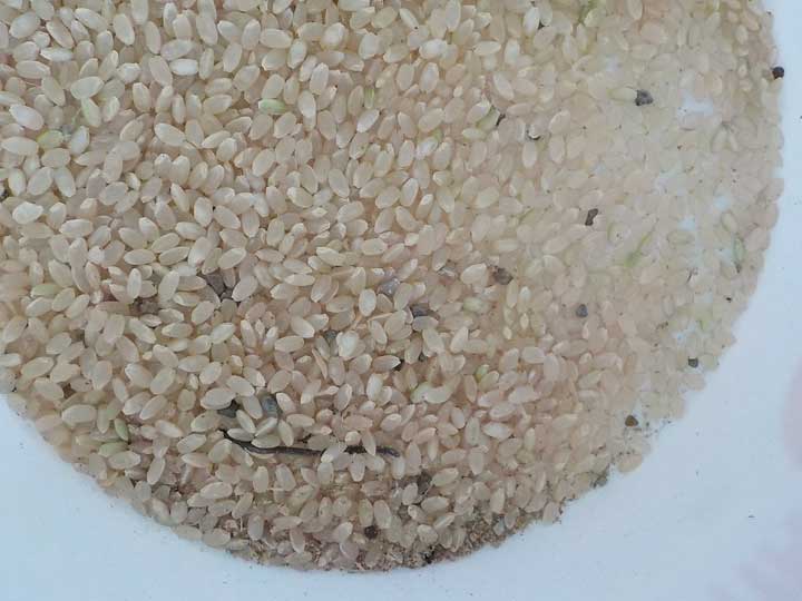 次に、殻を取った玄米から小石や異物を取り除きます。地面が乾いていない田んぼや、倒れた稲を収穫した場合、一緒に小石も入り込んでしまいます。石抜き機を通せば、まずご飯を食べていて石を噛むということはなくなります。