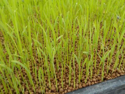 ビニールハウスに並べたハナエチゼンの苗のその後です。芽が出てから10日ほどたちました。