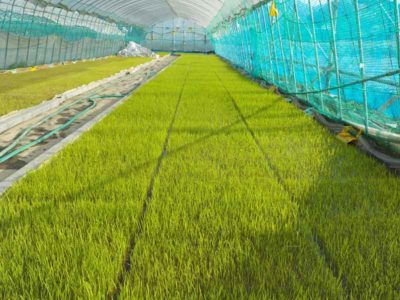 日中は基本的にシートを全開にして水温が上がらないようにし、夜間は10度以下になるようなら閉めるようにしています。毎日の水やりをする必要が無いのも楽なところです。4月末の田植えまでゆっくり育てます。