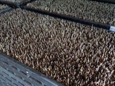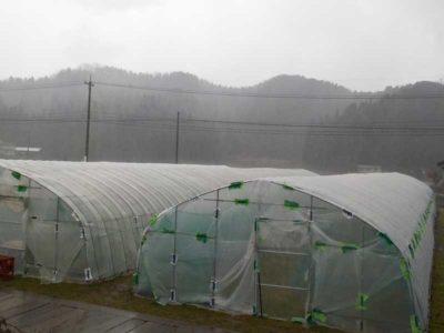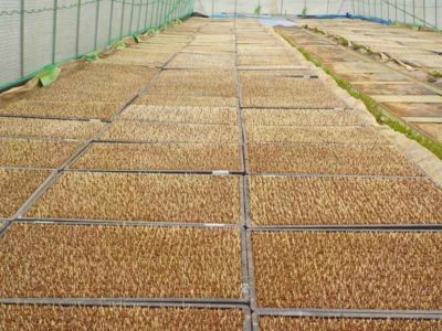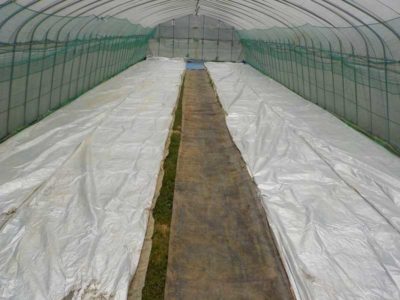 最後に日よけのためのシートを掛けて終わりです。白い芽は直射日光に弱いので遮光シートの下で徐々に慣らしていきます。