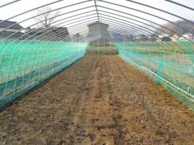 今週はずっと雨だったので屋外での作業ができず、本日急ぎでビニールハウスの準備をしました。来週末には苗を並べる予定です。