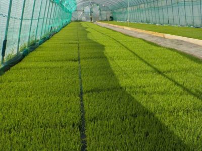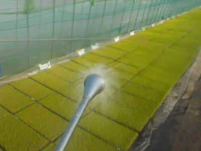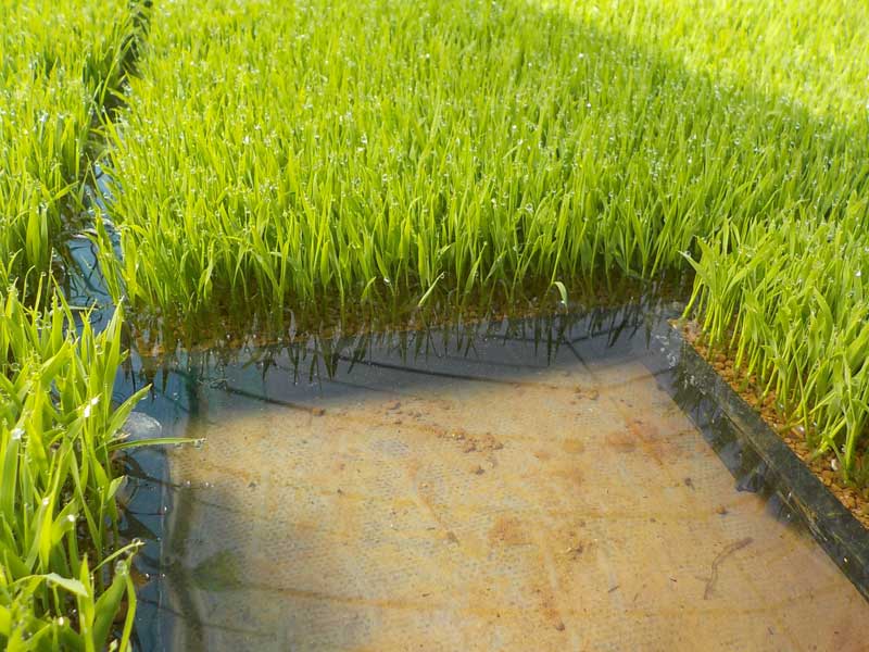 その生長が遅れる問題を解決する方法の1つがプール育苗。水は空気と比べると温まりにくく冷めにくいので、急激な温度変化がありません。早朝の気温が5度でも水温は10度以上は確保できるので、20日ほどで田植えが出来る苗を作ることが出来ます。