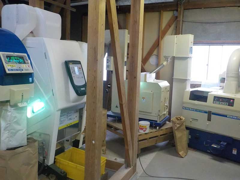 最後に30kgづつ袋に詰めて出荷または保管となります。昔は米俵1つで1俵(60kg)だったらしいのでその半分なのですが、それでも30kgは重いです。何百、何千袋と扱うので、上手に持ち上げないと腰を痛めます。20kgの袋にならないでしょうか。