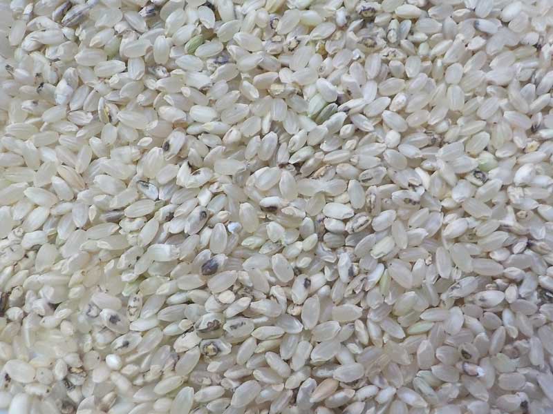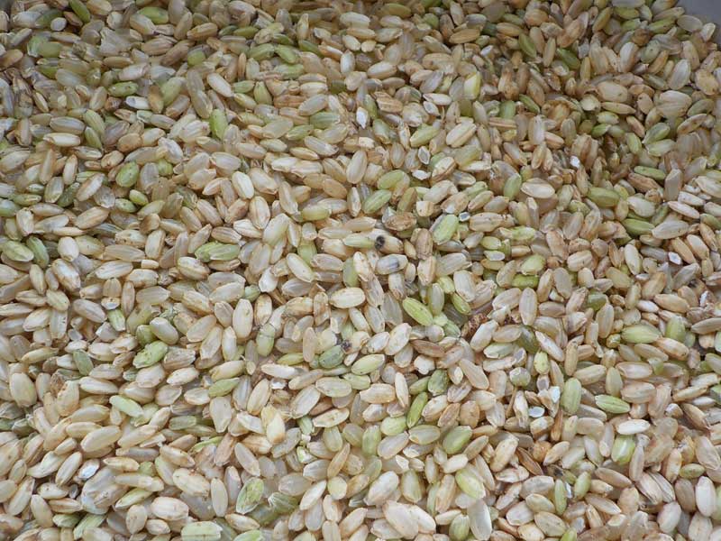 最終的にこのような感じの玄米になります。今年の早生品種は乳白米が多め。色彩選別でも取りきれないくらいたくさん入っています。