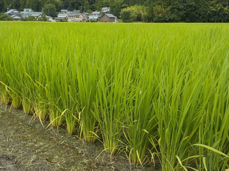 一番最後に植えたコシヒカリもだいぶん大きくなってきました。穂が出るのはまだ1週間ぐらいあとになりそうです。今年はコシヒカリを植える期間を分散させてみたのですが、最初に植えた分は暑さでかなり疲れているみたいなので、ちょっと出来が悪そうです。稲は一年に一度の収穫で、どれだけいい肥料、徹底した水管理をしても結局は天候次第なのが辛い所です。