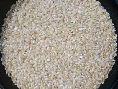 黒い皿で見ると白いお米が目立ちます。これも高温障害で生じるお米で、白いのはデンプンがうまく蓄積されなかった部分になります。精米で砕けてしまったり、炊飯時に溶けてしまったりと食感が悪くなります。