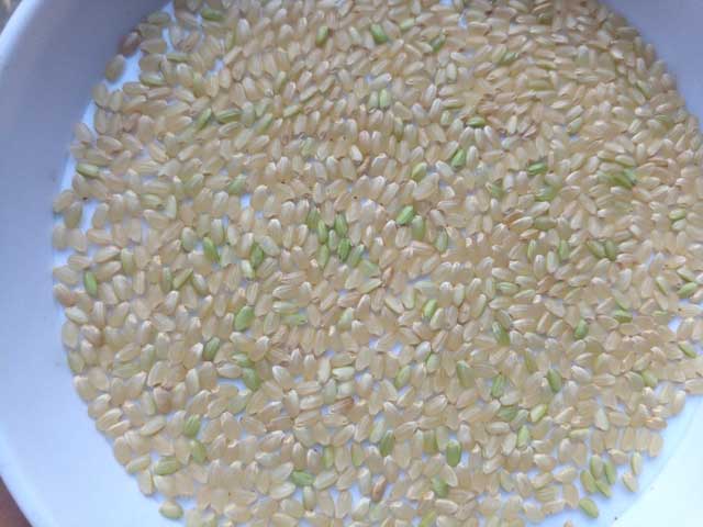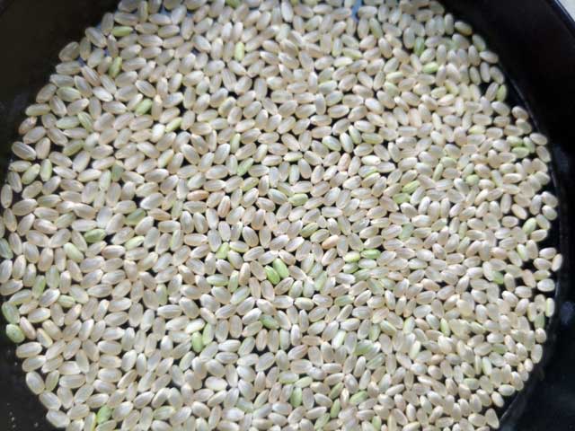 今年のお米は結構ひどいですね。青い未熟米が多い。基本的に未熟米が多いということは刈るのが早いということなのですが、全体の水分はもう刈らないとまずいというくらいなので刈ってしまいました。暑すぎて稲の穂先は乾きすぎ、にもかかわらず根本はまだ登熟途中で青いという感じです。