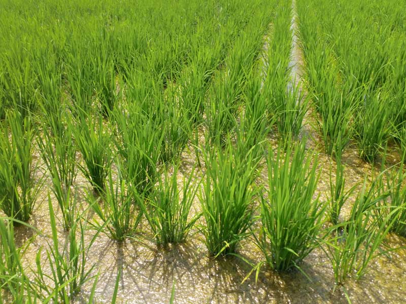 もち米の田んぼの様子。もち種の稲も見た目はうるち米の稲と全く同じ。穂が出るとちょっと見た目が変わってきます。