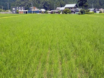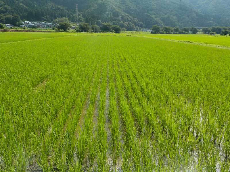 田んぼの様子はというと、6月中旬に植えたコシヒカリはまだこんな感じでかなりスカスカ。今年は梅雨が長かったので生育が遅れ気味です。収穫は10月に入ってからになりそう。