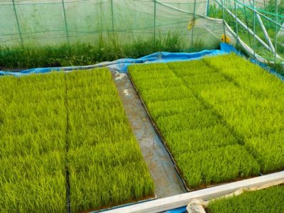 ただ、苗が水でドボドボなので乾くかが心配です。プール育苗の場合だと田植え前の数日前に水を切らないといけないのですが、あまり早いと乾きすぎ、遅いと重たいドボドボの苗になってしまいます。15日に田植え予定です。