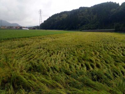 と言っても収穫前の稲にとっては少しの雨も災害級で、実りすぎている稲は重さで潰れます。倒れた稲は水で濡れるので品質が悪くなるし、刈るのにも手間と時間がかかります。