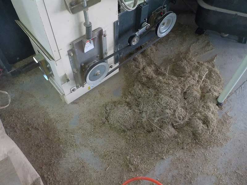 普段の清掃とは違って、収穫シーズン最後の清掃は年末の大掃除みたいなものです。可能な限り機械をバラして細部まで清掃をすると、どこにこれだけのゴミが詰まっていたのかがわからないほど大量の藁クズや埃が出てきます。