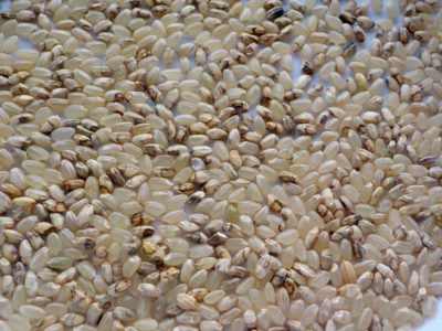 カメムシに汁を吸われたお米は黒っぽく変色してしまい、玄米に多数混入するとお米の等級(品質)が下がってしまいます。そのため、田んぼでの栽培期間中は殺虫剤を散布したり、収穫後は色彩選別機を通して着色米を取り除いたりします。ですが、100%完全にはカメムシを防除できたり、斑点米を機械で取り除いたりは出来ず、少しは残留してしまいます。