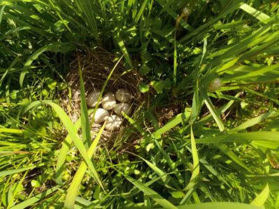 あんまり草刈りが遅いとあちこちにカモが巣を作って卵を産むので、それを踏まないかがいつも心配です。