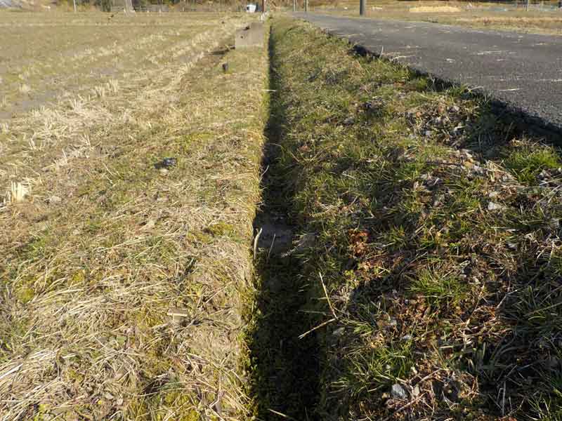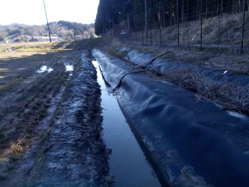 続いて、水路の掃除。枯草や泥が溜まっているので、