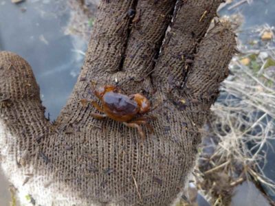 白いザリガニ?など、様々な生き物が住んでいます。自分が子供の頃はこういった場所でザリガニやカエルを捕まえて遊んでいたことを思い出しました。最近だと田舎でもまずこんな遊びをしている子はいないので、少し残念に思います。自然の土や水、生き物に触れる機会というのもこれから益々減っていくのでしょうか。