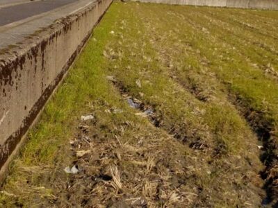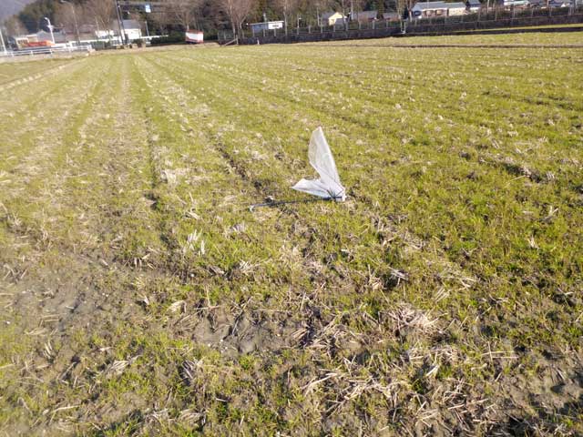 田んぼのゴミ拾い。コンビニの周囲の田んぼは特にすごい量が落ちています。
