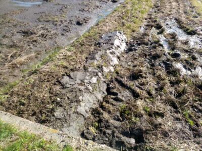 昨年直そうと思っていた畦の補修。モグラやイノシシで穴だらけになっていた部分を埋めて水が漏れないようにします。水が漏れると隣の田んぼに迷惑がかかるのと、そもそも水管理が大変になるので今のうちに直しておきます。