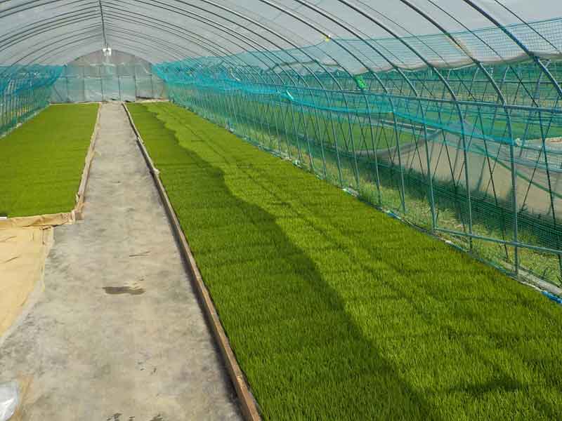 ビニールハウスのビニールの厚さは0.1mmしかありませんが、閉め切ると一瞬で40度を超えます。プール育苗の場合は水を張ってあるので、空気とは違って水温はゆっくりと温度が上がるのでそれほど慌てることはないのですが、通常の畑育苗の場合はあっという間に苗が焼けてしまいます。