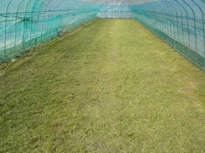 ほったらかしにしておいたビニールハウスの地面もこの暑さで草が伸び放題。