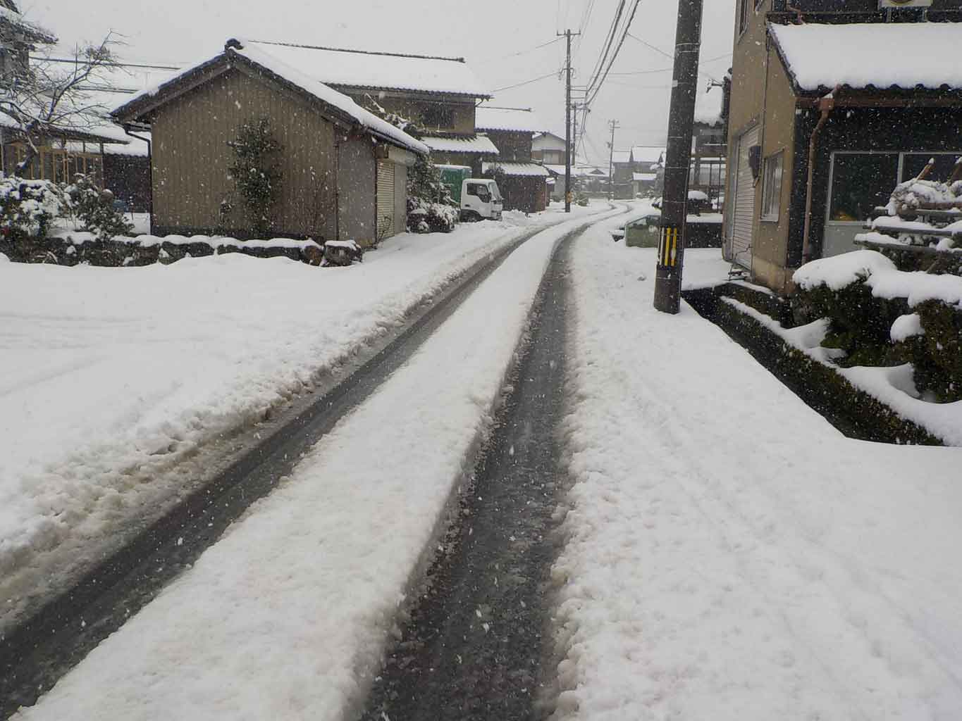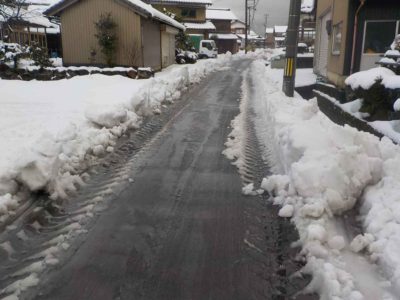道路もわだちが出来てしまっているので、田舎の道だと対向車が来ると結構面倒です。昔、学校へ通学するとき、このわだちの部分を歩いていったのですが、車が来ると雪が積もっているところに退かないといけないのでそれが大変でした。車に乗るようになった今からか考えると、結構危ないことをしていたと思います。