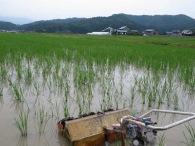 無農薬栽培のコシヒカリの田植えからだいたい30日が経ちました。昨年はほとんど田んぼに入らなくても良いくらい雑草が少なかっただけに、今年は除草に苦労しています。
