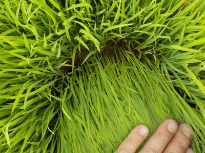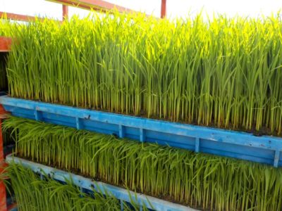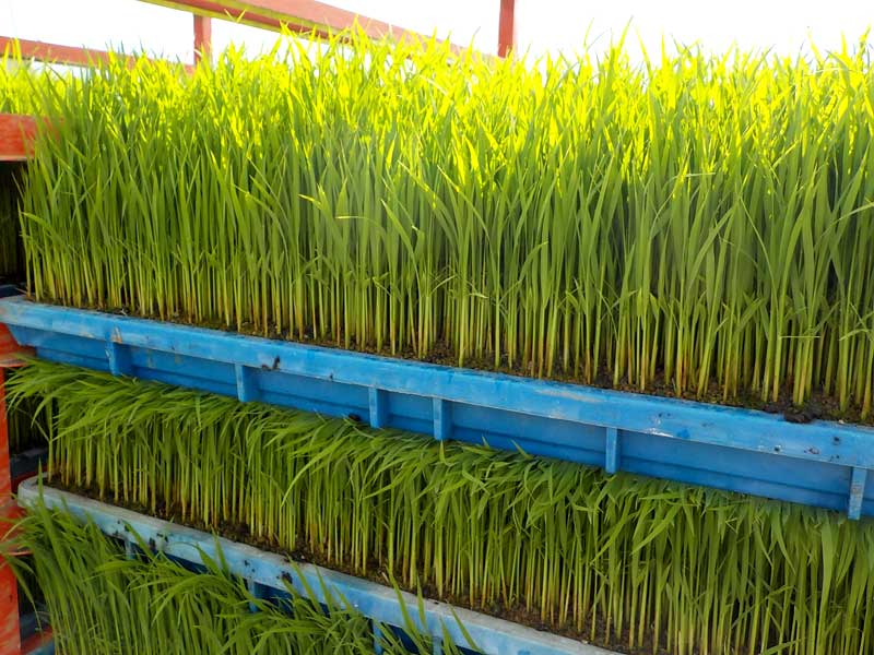 高山農園の苗は密苗とまではいきませんが1箱に種を200gまきます。もちろん有機栽培の苗も200gです。通常、無農薬栽培用の苗だとポット苗や、マット苗でも80g以下の薄まきにして苗を大きく育ててから移植するというのが一般的です。高山農園でも過去にポット苗などを試したこともありましたが、あまりその良さがわからなかったので今の200g蒔きで苗を作っています。こちらの苗の方が田植え後の状態が良いくらいで、さらに苗の枚数も10~12枚/10aほどで済むので、過保護に育てすぎない方が良いというのが今のところの感想です。近年では苗は踏んだり散髪をしたり、プールで水圧をかけてストレスを与えて育てるのがトレンドなので、密苗というのも1つの手かもしれません。