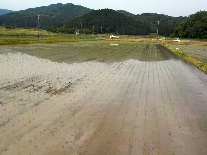 田植えもいつもと一緒で、除草剤を散布しないだけです。ただ、高山農園では田植えの後にチェーン除草を何回かするので、まっすぐに植えてあると除草機で苗を踏みにくくなります。