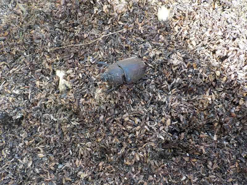 この堆肥が小さい生き物にとっては好物みたいで、ミミズからカブトムシまでと様々な生物が寄ってきます。だいたいはイノシシの遊び場になります。