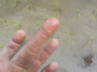 高山農園では農薬を一切使用しない、農薬不使用栽培の田んぼがいくつかあります。田んぼも何もしないと雑草が生えます。通常は除草剤を使用して雑草を生えないようにするのですが、除草剤を使用しない場合は別の方法を考えないといけません。